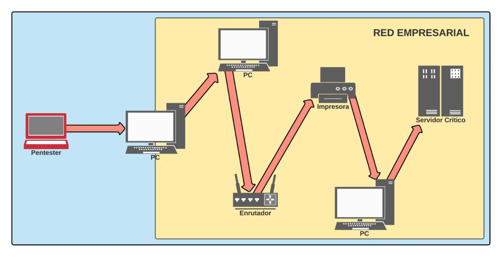 Aquí es donde entra el pivoting. Una vez que el atacante compromete el primer punto de acceso (la «cabeza de playa»), utiliza esa máquina para: